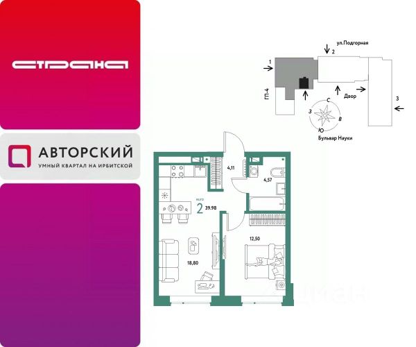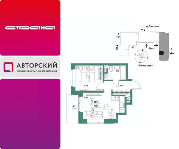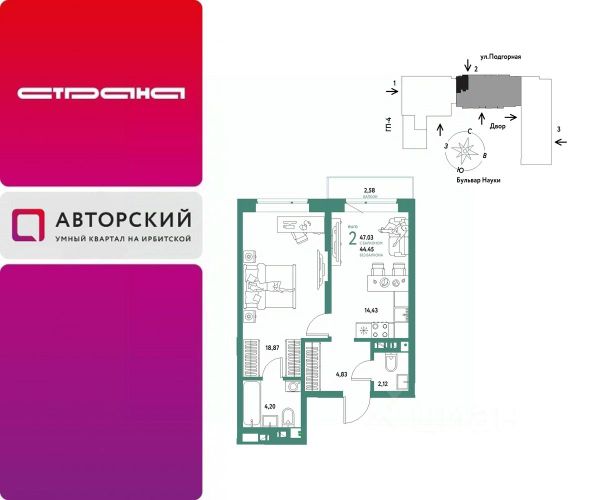 Новая квартира в ЖК "Авторский" напрямую от федерального застройщика "Страна Девелопмент". Продается 2комнатная квартира на 4 этаже от застройщика Страна Девелопмент. Площадь квартиры 44,52 кв. м. Жилой комплекс "Авторский" — квартал для авторов своей жизни от федерального застройщика "Страна Девелопмент" вблизи исторического центра — до Моста Влюблённых 4 минуты на авто, а ещё рядом ведущие вузы Тюмени. Преимущества • Тематический бульвар объединяет дома и закрытые дворы квартала в единую экосистему: зелень, перголы для отдыха, детские и спортивные площадки. По вечерам бульвар преображается: освещение создаёт уютную атмосферу. • Новый детский сад рядом, который появится в 2026 году прямо в одном из корпусов комплекса. В нём выделено 150 мест для малышей. • Во дворах нет машин, шума, выхлопных газов и посторонних людей. Всё пространство разделено на зоны по интересам и возрастам. Для детей — игровые площадки из эко-материалов и мягкая защита от падений. Для взрослых — зоны отдыха, воркаут-площадки и тропинки для неспешных прогулок. Отделка Квартиры сдаются с предчистовой отделкой: произведена разводка электричества и отопления, выполнена стяжка пола, стены выровнены "под маяк", установлены радиаторы. Способы покупки Сотрудники "Страна Девелопмент" будут сопровождать вас на каждом этапе сделки, помогут получить одобрение по ипотеке или снизить ежемесячный платеж. - ипотека - рассрочка - с использованием материнского капитала -100% оплата наличными