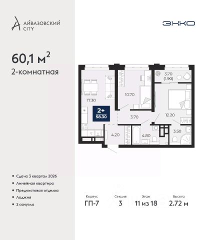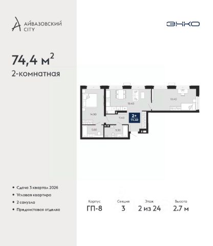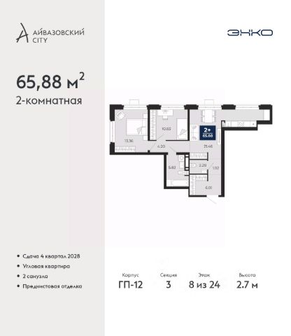 Спешите оформить бронирование, пока действует скидка, период акции ограничен! Стоимость квартиры указана со скидкой, ваша экономия составит 1,220,000 руб. Информация по телефону, наши менеджеры вам все расскажут. Просторная 2-комн. квартира в ЖК "Айвазовский" на 2 этаже. Квартира без отделки, полностью готова к чистовой отделке и дальнейшему ремонту. Общая площадь: 90.06 кв.м., жилая: 42.88 кв.м., площадь просторной кухни-столовой: 23.18 кв.м. Квартира угловая, идеально подойдет любителям тишины и панорамных видов. В квартире одна лоджия, два совмещенных санузла. Высота потолков 2.72 м. Дом монолитный, многоподъездный, переменной этажности, от 5 до 21 этажей. Квартира находится в 5-й секции высотой 9 этажей в корпусе ГП-5. На этаже 5 квартир. В подъезде 1 пассажирский и 1 грузовой лифт. В настоящее время строительство окончено, дом сдан в 4 квартале 2023 года. Оформление сделки по договору купли-продажи. Новый жилой район располагается в живописном месте на берегу Туры в центральной части города. Принципиально новое пространство для жизни в центре современного города для тех, чьи мечты сбываются, кто нацелен на постоянный рост, перемены к лучшему для себя и своих близких. Каждая деталь ЖК "Айвазовский" вдохновляет и заряжает на новые свершения: авторская архитектура, сбалансированная продуманная инфраструктура, дизайнерские дворы со спортивными и детскими площадками, парковые зоны с фонтанами, водный канал, украшающий центральный прогулочный маршрут района и многое другое. В 2019 года проект стал лауреатом престижной премии Urban Awards 2019 в номинации "Лучший строящийся региональный жилой комплекс бизнес-класса". Главная особенность Айвазовский - соседство разных архитектурных школ в рамках одного дома. Изысканная классика, выразительная эклектика и оригинальный модерн - жить в одном из таких домов настоящий повод для гордости. Айвазовский это идеальное сочетание комфорта, технологий и развитой инфраструктуры. Вход в подъезд возможен с улицы и со двора. Отправляясь на работу или за покупками, жители могут выйти с внешней стороны дома, а для прогулки с ребенком со стороны двора. Экологически чистые материалы и энергосберегающие технологии, качественное освещение общественных зон, видеонаблюдение по всей территории жилого района (в том числе в подъездах, лифтах и в подземном паркинге), закрытые дворы с доступом только для жителей Айвазовский. Часть домов в Айвазовский будут оснащены подземным паркингом. Востребованный в нашем климатическом поясе формат хранения автомобилей защитит собственность владельца в любое время года. Аккредитация в банках: ОАО "Альфа-Банк", ПАО "Газпромбанк", "Сбербанк России", ПАО Банк "ВТБ", АО "ДОМ.РФ" и других. #iCWAaZ Продам 2-комнатную квартиру 2-комнатных квартир в Айвазовский в Тюмени.