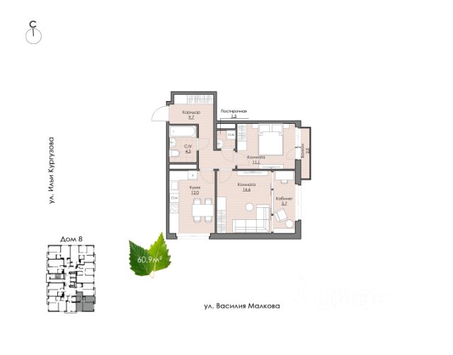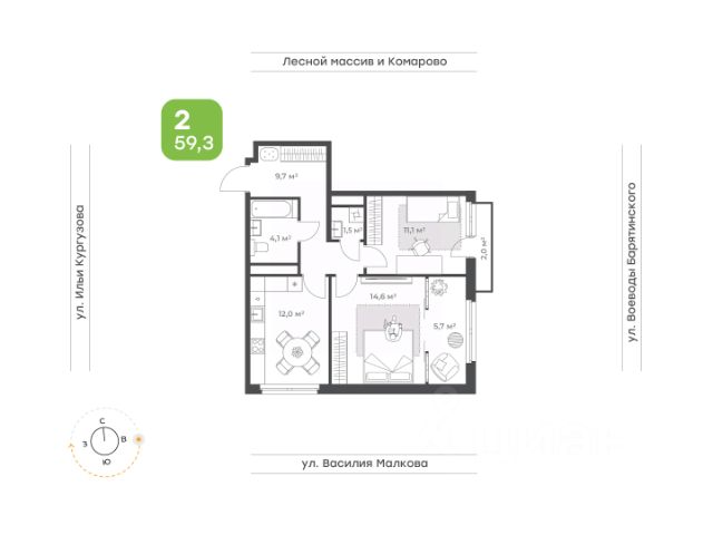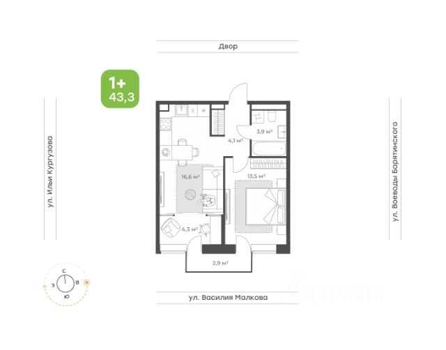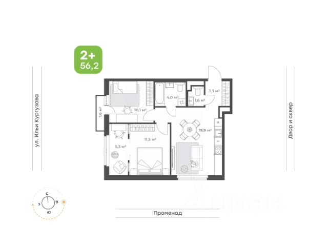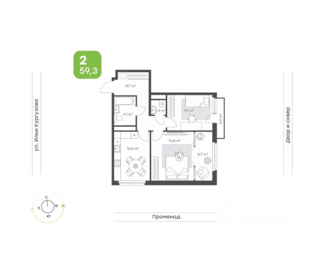 Классическая двухкомнатная квартира с видом на двор и променад Если вы выбрали эту квартиру, то вы ценитель классической планировки, а классика всегда остается актуальной! • Удобная кухня с широким окном • Спальня с французским балконом • Вместительный коридор • Удобный санузел, где вместится все необходимое • Прачечная, где вы можете расположить стиральную и сушильную машины и шкафчик со всем необходимым для дома