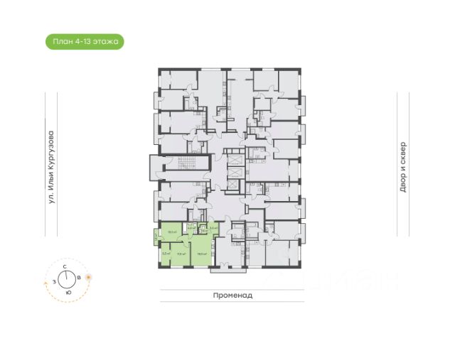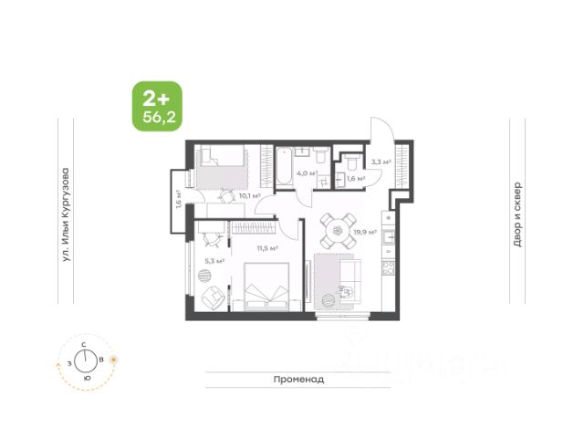 Двухкомнатная квартира с видом на природный сквер Если вы выбрали эту квартиру, то вы счастливый обладатель идеальной квартиры евроформата! Удобная кухня-гостиная с выделенной зоной, которую вы можете использовать как кабинет или зону отдыха Спальня для вас двоих Вместительный коридор с нишей под шкаф-купе Удобный санузел, где вместится все необходимое