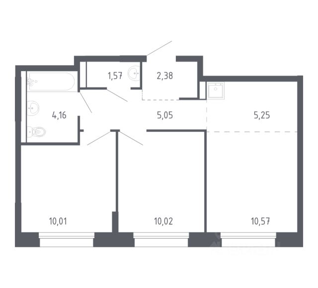 В продаже 2-комнатная квартира в корпусе 2.1 ЖК 'Чаркова 72'. Квартира располагается на 2 этаже, общая площадь 57.27 м2.