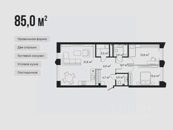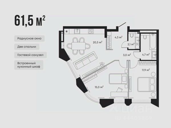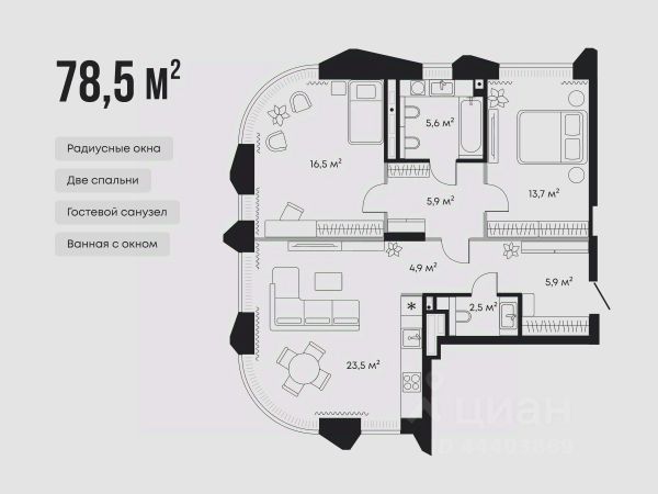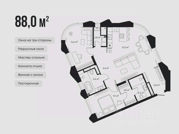 Квартира в квартале премиум-класса в сердце города. Рядом набережная, пешеходный бульвар и главные улицы. Планировка предусматривает две спальни, кухню-гостиную, дополнительный санузел и постирочную. Высота окон — 2,4 метра, поэтому в комнаты проникает много естественного света. В одной из спален спроектировано радиусное окно для бесшовного обзора на две стороны. Профили выполнены из золотистого алюминия. Витражи с тройным остеклением и двухкамерным стеклопакетом. Они не пропускают холод и жар — это сохраняет комфортный микроклимат в квартире. Внутри пола встроены бесшумные конвекторы. Они создают естественную циркуляцию теплого воздуха и не загораживают вид из окна. Узнать детали проекта и договориться о персональной презентации можно по номеру, указанному в объявлении.