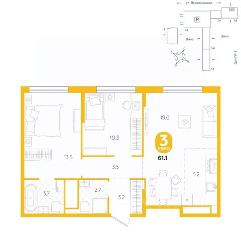Квартира располагается в ГК "Чистые Пруды" от "Паритет девелопмент". Это флагманский проект компании в Тюмени. Расположение вдали от шумных улиц и оживленного центра создает ощущение жизни на природе и окружает тишиной и спокойствием. Есть вся необходимая социальная и коммерческая инфраструктура: магазины и сфера услуг на первых этажах. Школы, сады, поликлиника, парки в шаговой доступности. Квартал строится в районе Новой Лесобазы. Рядом выезд на объездную, что существенно экономит время. Поездка до центра города на автомобиле занимает 15-20 минут. Городские кварталы "Чистые Пруды" сформирован из домов переменной этажности и многоуровневых паркингов. Ввод 1 очереди строительства запланирован на II кв. 2028 года. Всё благоустройство квартала представлено двумя функциональными зонами: приватная внутри дворовая и общественная. Каждый закрытый двор имеет выход на единую променадную зону - бульвар. Концепция благоустройства основана на принципе модульности, что формирует основную идею приватности. Приватность проекта подчеркивает его особенный климат внутри. Модульное благоустройство позволит максимально эффективно использовать пространство двора и удовлетворить потребности различных категорий жителей. В квартирах базово выполнена улучшенная черновая отделка, которая включает в себя: выровненные стены, стяжка пола с шумоизоляцией, горизонтальная разводка отопления, установлены счетчики с телеметрией, окна с 5-камерным профилем и надежные входные двери. При желании можно добавить ремонт от застройщика и включить его в стоимость ипотеки, что позволит сэкономить на стройматериалах и переехать сразу после получения ключей. Характеристики квартиры: этаж - 2 количество комнат - 3 номер помещения - 271 площадь квартиры - 68,6 кв.мГармоничные пропорции и большие окна наполняют пространство светом, создавая уютную атмосферу. Умное зонирование позволяет удобно организовать как рабочую, так и жилую зоны, что особенно важно для современных жителей. Санузел спроектирован с учетом всех потребностей: здесь есть ванна и место для стиральной машины. Каждый метр квартиры используется с максимальной эффективностью, что делает эту планировку отличным выбором для тех, кто ценит комфорт и удобство.
