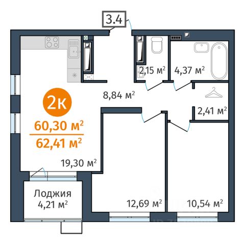 - Просторная лоджия: Отличное место для обустройства зоны отдыха или рабочего места с великолепным видом на город.