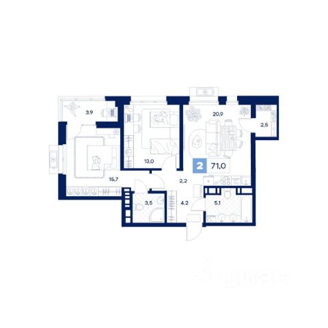 Продаётся 2-комнатная квартира в строящемся доме (ГП-1), срок сдачи: II-кв. 2026, общей площадью 66.6 кв.м., на 5 этаже. Дом Нойферта - это проект, созданный в соответствии с принципами, которые когда-то в 1936 году заложил Эрнст Нойферт. Здесь вы не найдете ни одной плохой планировки. В каждую комнату легко помещается мебель, которая в ней должны быть, а человеку остается пространство нужное для перемещения или для какого-то соответствующего времяпрепровождения. Эрнст Нойферт. Его называют отцом эргономики. Он - автор книги "Строительное проектирование", в которой впервые были систематизированы все подходы к созданию пространственных и планировочных решений. Именно Эрнст Нойферт научно определил, какими должны быть планировки. Для этого главным героем книги он выбрал человека, чья жизнь была полностью описана с точки зрения площадей и расстояний, которые нужны для комфортного обитания и для самых разных занятий. Квартиры с террасами и хайфлеты Статус каждого дома соответствует тому, какие квартиры в нем есть. В нашем доме есть особые квартиры. Это двухэтажные хайфлэты с огромными окнами, а также целый этаж квартир с террасами. Они задают уровень объекта. Нет студий и маленьких квартир В Доме Нойферта нет квартир-студий. Во-первых, это связано с тем, что в трудах Эрнста Нойферта не описаны подобные квартиры. Во-вторых это и наше решение. Мы не проектировали временное жилье или то, что кто-то купит для сдачи в аренду. У нас есть квартиры только для полноценной жизни.
