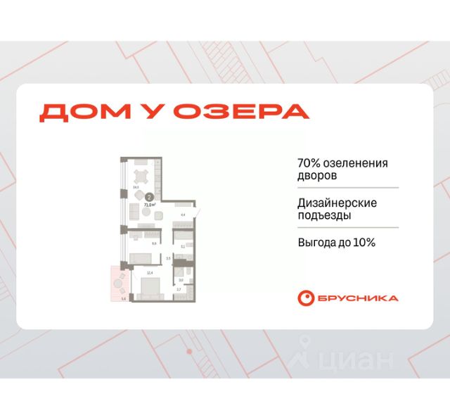 Квартира в счёт первоначального взноса по программе обмена. Информация по телефону, мы вам все подробно расскажем! Продается двухкомнатная квартира с предчистовой отделкой в ЖК "Дом у озера" на 6 этаже. Общая площадь: 62.78 кв.м., жилая: 22.2 кв.м., площадь просторной кухни-гостиной: 24.8 кв.м. Комнаты изолированные, все окна выходят на одну сторону. В квартире одна лоджия, один совмещенный и один раздельный санузел. Высота потолков 2.7 м. Дом монолитный, многоподъездный, переменной этажности, от 1 до 8 этажей. Квартира находится в 8-й секции высотой 8 этажей в корпусе 2. На этаже 5 квартир. В подъезде 1 грузовой лифт. Окончание строительства - 4 квартал 2025 года. Оформление сделки по договору долевого участия. Квартира с кухней-гостиной и двумя спальнями в Доме у озера. Особенности планировки: второй санузел, вид во двор, панорамное остекление, разнесённые спальни, предчистовая отделка, балкон. квартиры в нашей базе: ДМУ-02-8-8.6.1. "Дом у озера" является продолжением "Европейского квартала". Он расположен в центре заречного района города. В 2030 году здесь появится квартал, состоящий из урбан-вилл, таунхаусов, секционных домов и башни. Вокруг уже сформирована необходимая инфраструктура: детские сады, школы, спортивный комплекс, продуктовые магазины, аптеки, кофейни, рестораны и салоны красоты. Путь до центра города занимает 7 минут на машине. Озеро Тихое — ценный рекреационный ресурс. Брусника вернула ему прежнее значение и сделала новой точкой притяжения для жителей микрорайона. Ключевым элементом концепции благоустройства стала вода. В каждой части квартала архитекторы нашли для нее свою форму. Вдоль пешеходных улиц разместили искусственные ручьи, на центральной площади — фонтан и дождевые сады. Основная точка притяжения жителей — озеро и выходящий на его сторону променад. Здесь мы организуем смотровые площадки и расположим летние террасы кафе и ресторанов. Тесную связь застройки с ландшафтом обеспечивает многоуровневое озеленение. Буфер из деревьев и кустарников по периметру квартала превращается в естественный ветрозащитный экран. Такое решение позволяет создать на территории "Дома у озера" комфортный микроклимат. Подъезды "Дома у озера" с прозрачными входными группами и большими лифтами. Для мест общего пользования архитекторы разработали новую интерьерную коллекцию, вдохновленную эклектичными восточными мотивами. В отделке сочетаются коричневый, желтый и белый цвета, повторяющие колористические решения фасадов. Декоративные перегородки, установленные в лобби, напоминают машрабию — элемент арабской архитектуры в виде узорной решетки. За счет мягкой мебели, многоуровневого освещения теплых оттенков и предметов декора (например, зеркал и картин) холлы воспринимаются как продолжение квартиры. #ZsCsCu