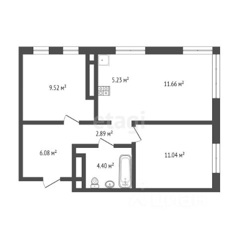 Общая площадь 36,7 м2.