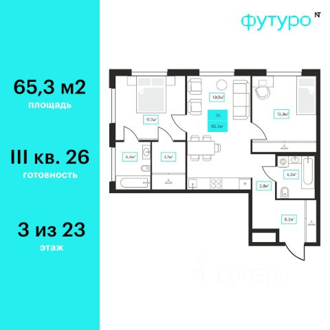 Продаётся 2-комнатная квартира в строящемся доме (Дом 6к1), срок сдачи: III-кв. 2026, общей площадью 65.3 кв.м., на 3 этаже. Новый жилой комплекс "Futuro" от застройщика "newton" расположен в г. Тюмень на Ставропольской улице.