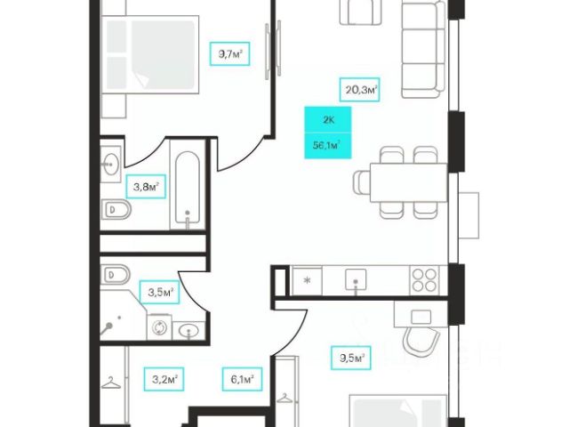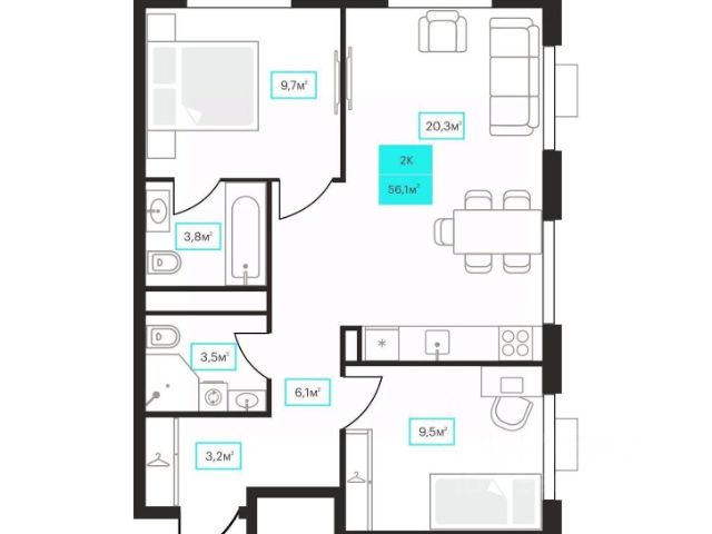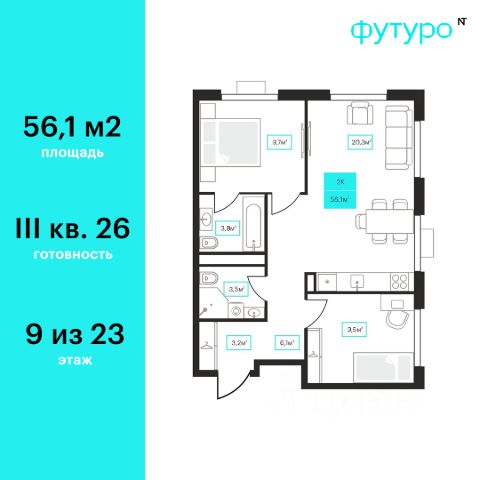 Продаётся 2-комнатная квартира в строящемся доме (Дом 6к1), срок сдачи: III-кв. 2026, общей площадью 56.1 кв.м., на 9 этаже. Новый жилой комплекс "Futuro" от застройщика "newton" расположен в г. Тюмень на Ставропольской улице.