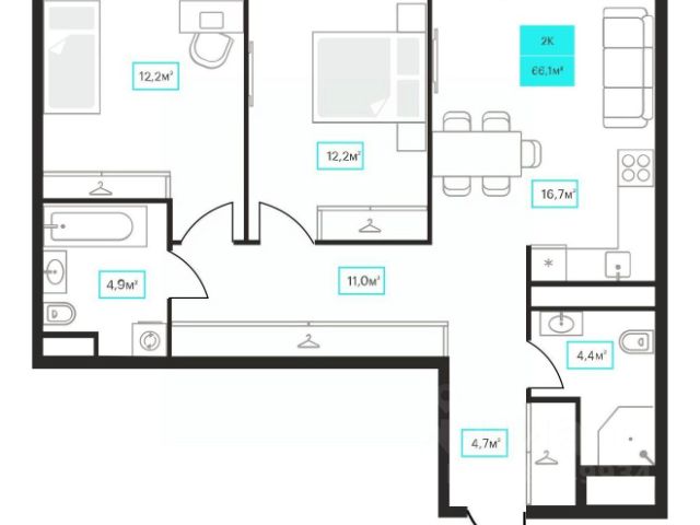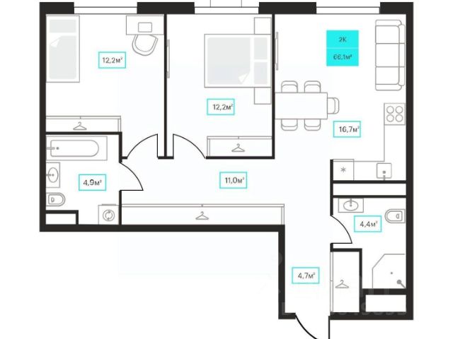 Продаётся 2-комнатная квартира в строящемся доме (Дом 6к1), срок сдачи: III-кв. 2026, общей площадью 66.2 кв.м., на 11 этаже. Новый жилой комплекс "Futuro" от застройщика "newton" расположен в г. Тюмень на Ставропольской улице.