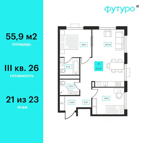 Продаётся 2-комнатная квартира в строящемся доме (Дом 6к1), срок сдачи: III-кв. 2026, общей площадью 55.9 кв.м., на 21 этаже. Новый жилой комплекс "Futuro" от застройщика "newton" расположен в г. Тюмень на Ставропольской улице.