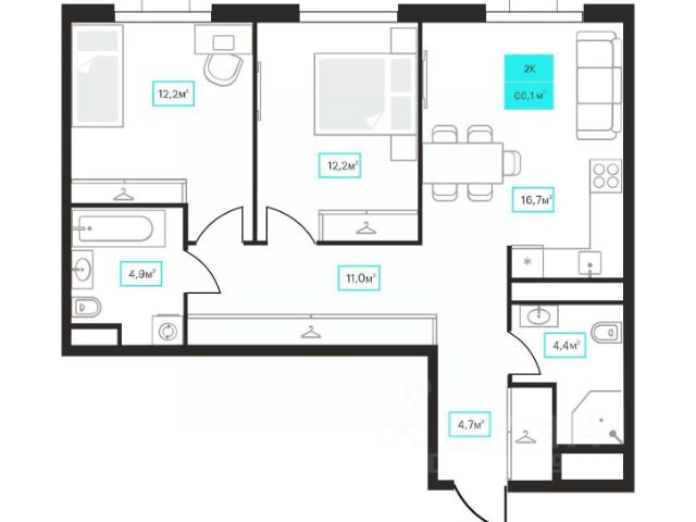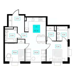 Продаётся 2-комнатная квартира в строящемся доме (Дом 6к1), срок сдачи: III-кв. 2026, общей площадью 61.7 кв.м., на 3 этаже. Новый жилой комплекс "Futuro" от застройщика "newton" расположен в г. Тюмень на Ставропольской улице.