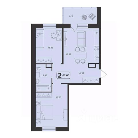 Продаётся 2-комнатная квартира в строящемся доме (ГП-4), срок сдачи: IV-кв. 2027, общей площадью 60.42 кв.м., на 6 этаже. Расположение, транспортная доступность Жилой комплекс "Горизонт" - это микрорайон, в состав которого входит девятнадцать 17-этажных односекционных монолитно-кирпичных зданий бюджетного класса. Микрорайон находится в северной части Тюмени, в Центральном административном округе, рядом с улицами Дружбы, Мельникайте и Тобольским трактом. Здесь ходит более десяти маршрутов общественного транспорта, на котором можно добраться до любого района города. К центральной части Тюмени от "Горизонта" можно доехать менее чем за пятнадцать минут. Инфраструктура Рядом с "Горизонтом" находятся: детские сады 165, 28, 63, детский сад-ясли 172, лицей 81, школа 36, поликлиника 8, супермаркеты "Магнит" и "Пятерочка", торговые центры "Ватутинский", "Северный", "Престиж". В соседних микрорайонах множество объектов инфраструктуры: торгово-развлекательный центр "Тюмень Сити Молл", (где находятся гипермаркеты "Ашан Сити", "Эльдорадо", десятки магазинов и бутиков, кафе, рестораны, боулинг, ручной зоопарк и кинотеатр), торговые центры "Зеленый берег", "Абсолют", колледж водного транспорта, гипермаркеты "Лента", "Леруа Мерлен", рынок "Лесная сказка", Дом культуры "Водник", спорткомплекс "Гагаринский" с 25-метровым бассейном, кроссфит-залом и паровой комнатой, спортивно-оздоровительный комплекс "Автотеплотехник", филиал Сбербанка, школа 48 им. Д.М. Карбышева. Экологическая ситуация в месте расположения "Горизонта" оценивается как очень хорошая. Микрорайон находится практически на границе с парком им. Гагарина, в нескольких сотнях метров от озер Алебашево и Круглое, рядом с Ватутинской рощей, садом Дружба и рекой Тура. Из окон зданий комплекса открываются живописные виды на великолепные окрестности. Надежность застройщика Микрорайон "Горизонт" построила тюменская компания "Аква", входящая в состав группы компаний ARSIB holding group, история которой началась в 1957 году с предприятия "Тюменьоблснабсбыт" Группа компаний ARSIB holding group занимается несколькими видами деятельности (сельским хозяйством, производством продуктов питания, торговлей, девелопментом), ей принадлежит ряд крупных торговых и торгово-развлекательных центров в Тюмени, а также Тюменский молочный завод. Микрорайон "Горизонт" - это первый проект компании ARSIB holding group на тюменском рынке жилищного строительства. Архитектурная концепция "Горизонта" была разработана компанией "Реконструкция 2000 и К". Основные строительно-монтажные работы при возведении микрорайона выполнила компания ООО "Строительно-монтажное управление 2". Архитектура В домах микрорайона "Горизонт" представлены студии и квартиры с количеством комнат от одной до трех площадью от 23,90 кв. м до 81,37 кв. м с потолками высотой 270 см. Все квартиры продаются с предчистовой отделкой: с входными металлическими сейф-дверями, стяжкой пола, остекленными балконами и лоджиями, горизонтальной разводкой труб отопле 2-комнатная квартира 2-комнатных квартир в Горизонт в Тюмени.