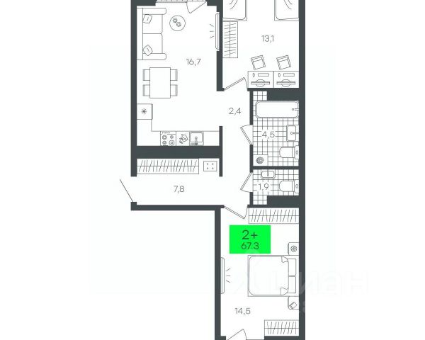 Продаётся 2-комнатная квартира в строящемся доме (Д4.1 (Малкова, 3)), срок сдачи: III-кв. 2026, общей площадью 67.36 кв.м., на 3 этаже. Компания 4D приступила к строительству нового жилого комплекса "Гранд квартал". Новый ЖК находится в зеленой зоне Калининского района, южнее микрорайона Тюменская слобода.