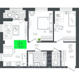 Продаётся 2-комнатная квартира в строящемся доме (В5.4 (Малкова, 19)), срок сдачи: III-кв. 2026, общей площадью 80.98 кв.м., на 9 этаже. Компания 4D приступила к строительству нового жилого комплекса "Гранд квартал". Новый ЖК находится в зеленой зоне Калининского района, южнее микрорайона Тюменская слобода.