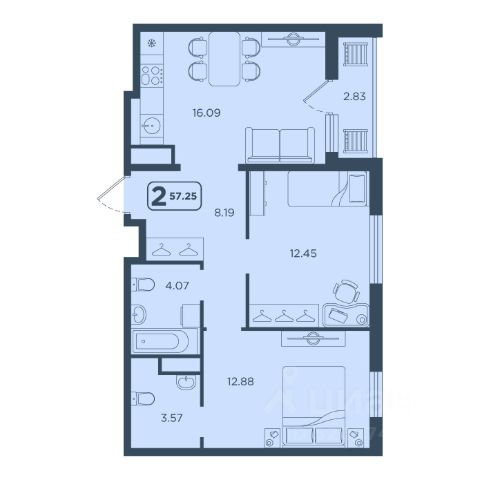 Продаётся 2-комнатная квартира в строящемся доме (ГП-1), срок сдачи: IV-кв. 2028, общей площадью 51.02 кв.м., на 23 этаже. Новый жилой комплекс "Континент" от Специализированного застройщика "Расцвет" расположен по адресу: г. Тюмень, по ул. Червишевский Тракт.