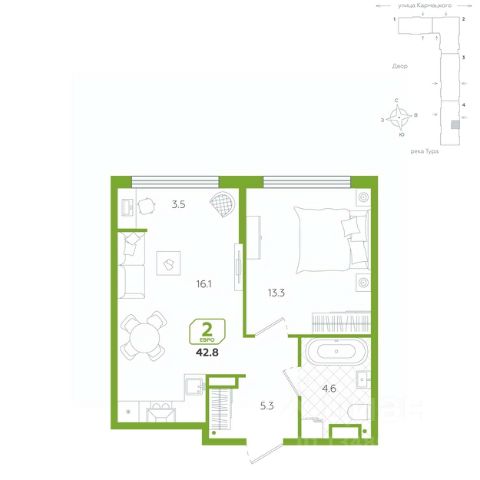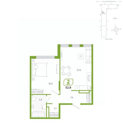 СРОЧНО продается 2-комнатная квартира в престижном жилом комплексе комфорт-класса с видом на РЕКУ! Цена значительно дешевле, чем у застройщика. Престижный район, цены на недвижимость в этом районе растут с каждым годом. Торопитесь! Эту квартиру можно купить по семейной ипотеке по ставке от 5,4% годовых. Квартира находится на 7 этаже, с отличными видовыми характеристиками. Из окон вашей квартиры будет видно реку и будущую набережную. Отделка квартиры - улучшенная черновая с увеличенными оконными проёмами, планировка квартиры очень функциональная, с удобной гардеробной, просторной ванной комнатой и прихожей. На фото представлены рендеры Вашей будущей квартиры с ремонтом. Мечта может стать реальностью! О ЛОКАЦИИ: дом расположен в 5-ом Заречном микрорайоне (не путайте со старой Зарекой) между двумя мощными транспортными артериями - ул. Мельникайте и ул. Профсоюзная, на берегу реки Тура, в непосредственной близости к лесному массиву. Дорога на автомобиле займет 5 минут до центра. Это абсолютно новый район, он активно развивается и по прогнозам будет признан одним из лучших районов г.Тюмени, благодаря большим инвестиционным планам на его развитие. Очень важное преимущество - инфраструктура района. Детские сады, общеобразовательная школа, художественная школа, супермаркеты, строительный магазин, кофейни, прогулочные зоны, спортивные и детские площадки, парк российско-корейской дружбы. ЖК "Космо" поднимает комфорт-класс на новую высоту. Впечатляя монументальностью, он являет собой ансамбль переменной этажности, в центре которого 24-этажная доминанта, устремленная в небо. Мягкая архитектурная подсветка вечерами подчеркивает декоративные элементы белого фасада и увеличенные окна квартир, что притягивает взгляды и делает ЖК запоминающимся. Двор свободен от машин. Для автомобилей - подземный паркинг (219 мест, лифт до жилых этажей) или парковка за периметром (130 мест). Внутренняя территория только для игр, отдыха, в том числе и активного на спортивных площадках, где летом можно устроить с друзьями турнир по стритболу, зимой — сыграть в хоккей. Сквозные парадные с видеонаблюдением, дизайнерским оформлением холлов, умными лифтами, колясочными под электронным ключом. Срок сдачи дома 3 квартал 2025 года. Вы можете сделать ремонт, сдавать и получать пассивный доход. Квартиры в этом районе пользуются повышенным спросом под сдачу. Звоните, буду рада ответить на все вопросы и провести экскурсию по микрорайону. Помогу в оформлении ипотеки! МЫ ГАРАНТИРУЕМ ФИНАНСОВУЮ БЕЗОПАСНОСТЬ ДЛЯ НАШИХ КЛИЕНТОВ. Код пользователя: 77770 Номер в базе: 9070986