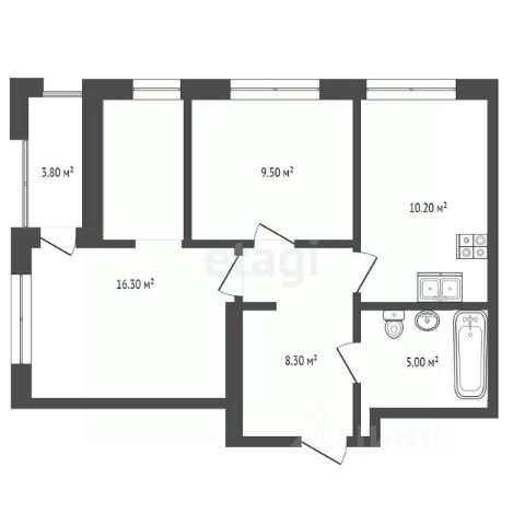 Просторная с выделенной кухней-гостиной. Пространство зонировано так, чтобы хватило места для ниши и столовой зоны, а также гостевой. В прихожей есть ниша для хранения сезонных вещей. Предусмотрена хозяйственная комната. Эргономичные спальни: детская — с пространством для учебы и отдыха, взрослая — с пространством для отдыха.