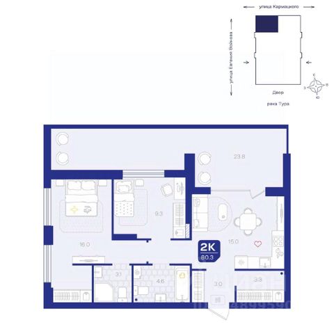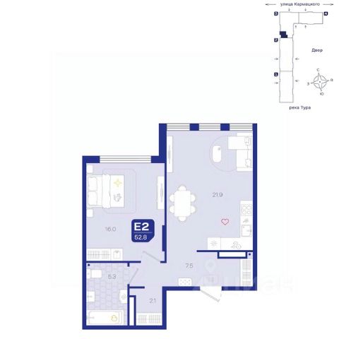 Соверменная двухкомнатная квартира предлагает впечатляющее сочетание стиля и функциональности. Просторная кухня-гостиная станет центром идеального вечера с друзьями или комфортным семейным уикендом. Здесь приятно провести время, наслаждаясь общением в светлом и просторном пространстве. Удобная и большая спальня предлагает достаточно места для размещения всей необходимой мебели и создания комфортной обстановки для отдыха. Это идеальное место для расслабления после долгого дня. Вместительная ванная комната оснащена всем необходимым, чтобы превратить ваши ежедневные процедуры в приятные моменты. Ее продуманный дизайн и эргономичное использование пространства обеспечивают комфорт и уют. Коридор с нишей под шкаф и отдельной гардеробной добавляет квартире практичности, позволяя организовать хранение вещей без лишнего беспорядка. Это делает квартиру удобной и комфортной в повседневном использовании. Эта квартира - идеальное решение для тех, кто ищет стильное и функциональное жилье в гармоничном пространстве.