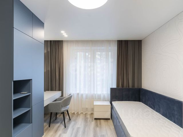 2. Формат два плюс - одно из самых востребованных решений: просторная кухня-гостиная 19 кв.м, где комфортно разместились зоны приготовления, столовая зона и зона отдыха, две изолированные комнаты правильной формы, в нашем случае это спальня со своей большой гардеробной и кабинет (он может стать для вас детской, гостевой комнатой, творческой мастерской), совмещенный санузел, функциональный коридор с местом под систему хранения. Все логично, удобно и комфортно.