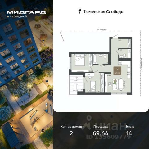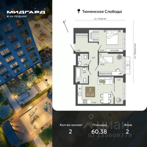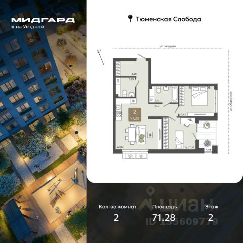 Просторная 2-комн. квартира в ЖК "Мидгард на Уездной" на 12 этаже. Квартира без отделки, новый собственник может сделать ремонт по своему дизайн-проекту. Общая площадь: 67.17 кв.м., жилая: 21.66 кв.м., площадь просторной кухни-столовой: 17.01 кв.м. Угловая квартира, очень светлая, естественная вентиляция при открытии окон. В квартире один балкон и одна лоджия, один совмещенный и один раздельный санузел. Высота потолков 2.72 м. Дом монолитный, черырехподъездный, переменной этажности, от 9 до 15 этажей. Квартира находится в 3-й секции высотой 15 этажей в корпусе ГП-1. На этаже 8 квартир. В подъезде 1 пассажирский и 1 грузовой лифт. Окончание строительства - 3 квартал 2027 года. Оформление сделки по договору долевого участия. "Мидгард на Уездной" - современный проект комфорт-класса, расположенный на первой линии Тюменской слободы, с видом на развязку Московского тракта. Он сочетает в себе современные архитектурные решения и комфортное проживание в гармонии с природой. Жилой комплекс находится в перспективном районе, который отличается транспортной доступностью: до крупных торговых центров "Кристалл" и "Колумб" можно добраться за 10 минут, а до центра города - за 15 минут. В шаговой доступности школы, детские сады, торговые центры и парки, что делает локацию идеальной для комфортной жизни. Проектом предусмотрены дома с дизайнерскими входными зонами и планировочными решения для любого сценария жизни с возможностью включить в ипотечный платеж ремонт, мебель и технику от застройщика. Закрытый двор и собственная аллея вдоль жилого комплекса позволят насладиться тишиной вдали от суеты большого города. #2MSceV