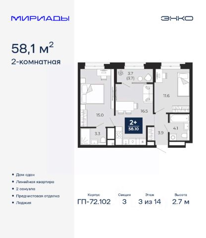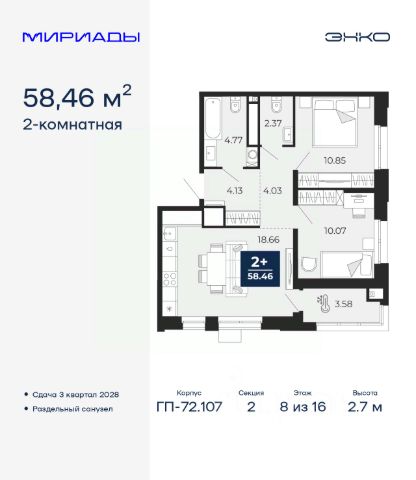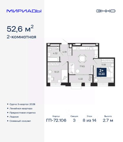 2-комнатные квартиры в жилом комплексе МириадыЖК «Мириады»