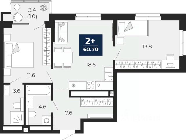 • ✓ В базе Циан 156 2-комнатных квартир в Тюмень в ЖК Мириады
