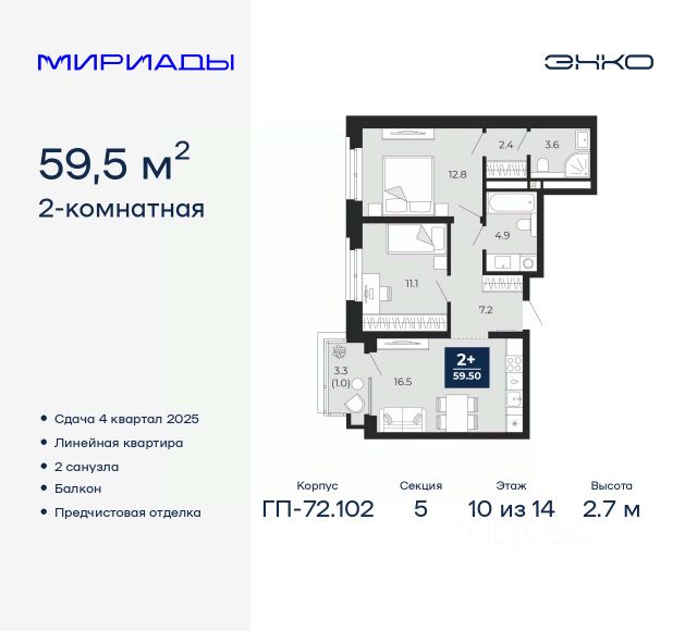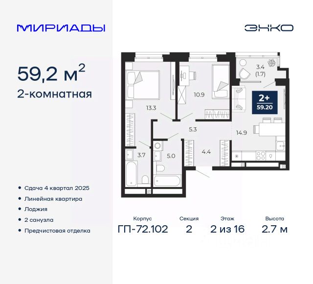 Продается 2-комн. квартира с европланировкой и предчистовой отделкой в ЖК "Мириады" на 4 этаже. Общая площадь: 40.1 кв.м., жилая: 21 кв.м., суммарная площадь гостиной-столовой с кухонной зоной: 15.5 кв.м. Европланировка, за счет большой площади кухни-гостиной квартира выглядит просторной и очень удобна для жизни. Комнаты изолированные, все окна выходят на одну сторону. В квартире одна лоджия, один совмещенный санузел. Высота потолков 2.7 м. Дом монолитный, двухподъездный, переменной этажности, от 14 до 18 этажей. Квартира находится во 2-й секции высотой 14 этажей в корпусе ГП-72.104. На этаже 8 квартир. В подъезде 1 пассажирский и 1 грузовой лифт. Окончание строительства - 4 квартал 2025 года. Оформление сделки по договору долевого участия. Вселенная бесконечных историй. Ранее невиданный Тюмени масштаб: территория 240 гектаров и 1 650 000 м² застройки. Мириады это город масштабных перемен и больших возможностей. Город зеленых рощ и зеркальных озер. Город для работы, учебы и развлечений. Город для детей и их родителей. Город для всех и каждого. Проект расположен в районе Мыс рядом с ТРЦ "Тюмень Сити Молл" в границах улицы Тимофея Чаркова, Тобольского тракта и объездной дороги. Срок полного освоения территории - до 2034 года. #zW9DbI