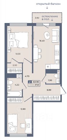 2-комнатные квартиры в жилом комплексе НикитинЖК «Никитин»