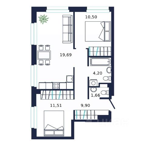 В кухне-гостиной уже установлен кухонный гарнитур с полным комплектом встроенной техники (холодильник, посудомоечная машина, микроволновка, духовой шкаф, варочная поверхность, вытяжка), установлен кондиционер, диван, обеденный стол со стульями. В прихожей установлен вместительный шкаф-купе. Ванная комната с полным комплектом сантехники. Вам останется только расставить мебель в комнатах под ваш состав семьи.