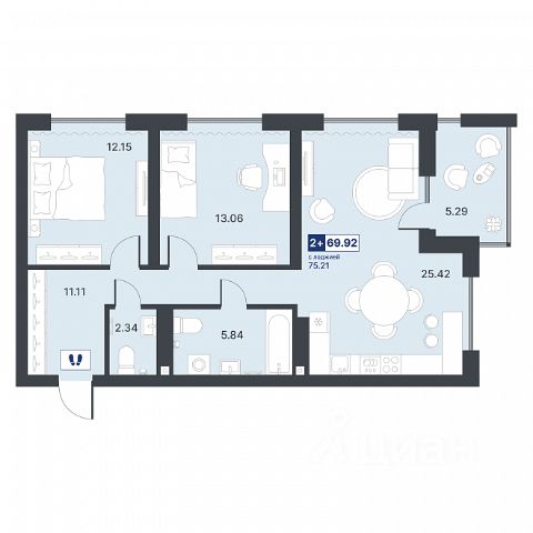 Продаётся 2-комнатная квартира в строящемся доме (ГП-1), срок сдачи: I-кв. 2027, общей площадью 69.92 кв.м., на 2 этаже. Новый жилой комплекс от Специализированного застройщика "Звезда" расположен в г. Тюмень по ул. Рылеева.