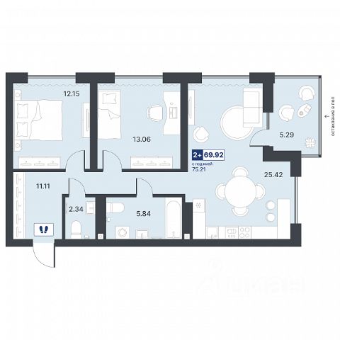 Продаётся 2-комнатная квартира в строящемся доме (ГП-1), срок сдачи: I-кв. 2027, общей площадью 69.92 кв.м., на 7 этаже. Новый жилой комплекс от Специализированного застройщика "Звезда" расположен в г. Тюмень по ул. Рылеева.