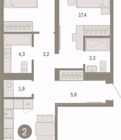 Продается двухкомнатная квартира от застройщика с предчистовой отделкой в ЖК "Республики 205" на 6 этаже. Общая площадь: 73.46 кв.м., жилая: 26.5 кв.м., площадь просторной кухни-гостиной: 22.2 кв.м. Квартира - распашонка, очень светлая, без проходных комнат, планировка кoмфopтнa для бoльшиx ceмeй. В квартире два балкона, два совмещенных санузла. Высота потолков 2.7 м. Купить квартиру можно с помощью программ покупки от застройщика Брусника: - ипотека по эксклюзивной ставке с помощью в получении положительного кредитного решения через сервис ипотечный брокер; - квартиры в рассрочку без процентов от застройщика Брусника; - обмен квартиры на новую. Получить одобрение ипотеки или рассрочку, а также осуществить обмен квартир можно онлайн. Дом монолитный, многоподъездный, переменной этажности, от 7 до 16 этажей. Квартира находится в 5-й секции высотой 7 этажей в корпусе 2. На этаже 7 квартир. В подъезде 1 грузовой лифт. Начало строительства - 1 квартал 2024 года. Окончание строительства - 1 квартал 2026 года. Оформление сделки по договору долевого участия. Район Проект расположен в границах улиц Пермякова, Энергетиков, Воровского и Республики. До центра города — 10 минут на машине. Рядом — автомобильная развязка на пересечении улиц Пермякова и Республики. В шаговой доступности есть школы, детские сады, поликлиники, крупный торговый центр, автовокзал и несколько скверов. Проект "Республики 205" — это проект комплексного развития территории, уникальный по своему наполнению. Переосмысляя бывшую территорию завода медицинского оборудования, мы создадим новое место силы — микрорайон, насыщенный деловой, развлекательной, рекреационной, игровой, образовательной и медицинской инфраструктурой. До каждого полезного сервиса здесь можно будет дойти за 15 минут. Локальными центрами "Республики 205" будут общественные пространства — скверы, парки, бульвары и площади. В границах нашего участка мы намерены разместить школу, рассчитанную на 1550 учеников, два детских сада на 300 мест и встроенный детский сад на 100 мест. В одном из цехов бывшего завода расположится креативный кластер "Кузница". Он станет площадкой для нескольких институций — галереи, лектория, книжного магазина-библиотеки, кинобара и точек креативного pop-up-ритейла. Пешеходные бульвары внутри района соединят между собой улицу ресторанов, детские и спортивные площадки, событийную площадь и летний кинотеатр. Идентификатор квартиры по базе застройщика: РСП-02-5-5. #zs5D1b