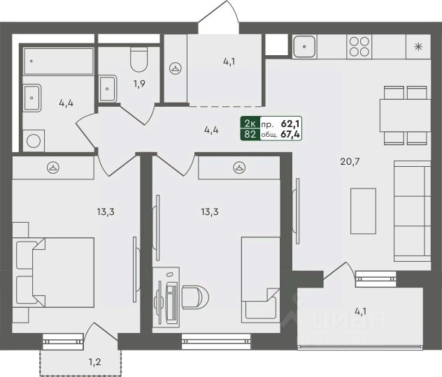 Продаётся 2-комнатная квартира в сданном доме (Бульварная, 1 (ГП-1)), срок сдачи: II-кв. 2025, общей площадью 67 кв.м., на 3 этаже. Проект в формате "Дома не выше сосен" отражает синтез великолепной архитектуры, престижной инфраструктуры и разумной стоимости. Жилье повышенного качества по доступной цене городского типа (квартиры), таунхаусы и индивидуальные дома с земельными участками характеризуются высокой транспортной доступностью исторического Тобольского тракта и формируют гармоничную и экологичную среду для комфортного проживания. Неповторимый архитектурный облик, выполненный с уважением и вниманием к природному ландшафту. Малоэтажные дома до 4 этажей соразмерны деревьям и не скрывают кромку леса. В квартирах с террасами и панорамными окнами наслаждаться окружающими пейзажами будет еще приятнее. В жилом комплексе предлагаются более 40 планировочных решений, включая особые форматы квартир. "Ритмы" - это. Нет ни одного предложения исключительный синтез современного жилья и загородного образа жизни: - функциональные по площади объекты - авторская архитектура российского архитектурного бюро "А.Лен" - индивидуальные фасады и атмосфера небольшого уютного европейского пригорода - качественное благоустройство - развитая инфраструктура - высокая транспортная доступность - хорошая экология