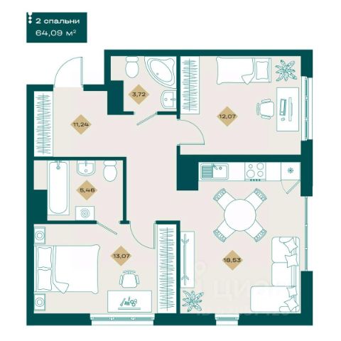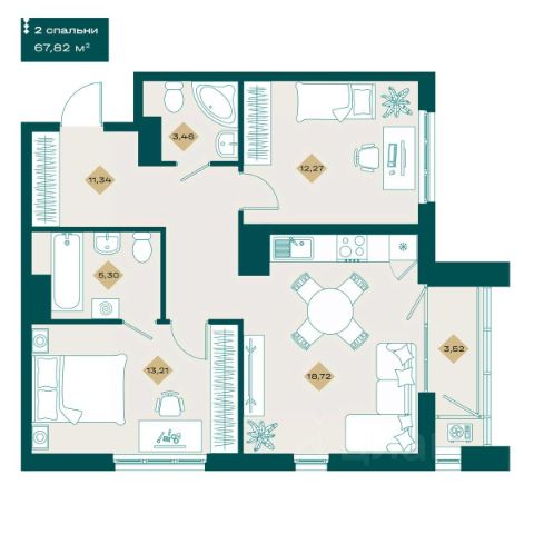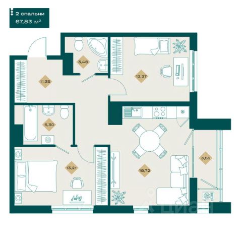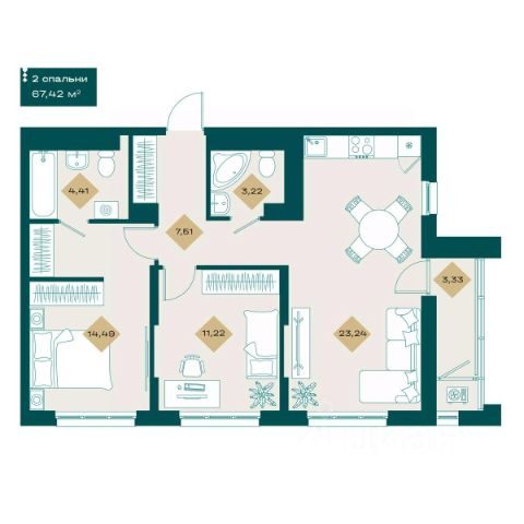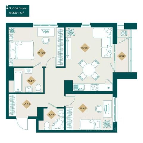 Продаётся 2-комнатная квартира в строящемся доме (Тимофея Кармацкого, 1 ), срок сдачи: IV-кв. 2026, общей площадью 61.61 кв.м., на 2 этаже. Новый жилой комплекс "Секреты" от Специализированного застройщика "СТОУН ДЕВЕЛОПМЕНТ" расположен по адресу: г. Тюмень, по ул. Тимофея Кармацкого.