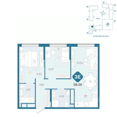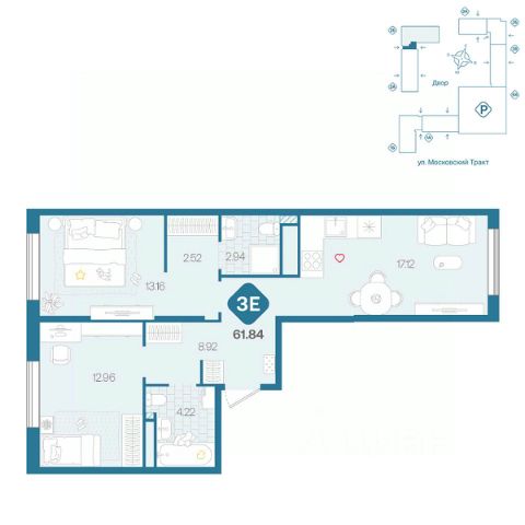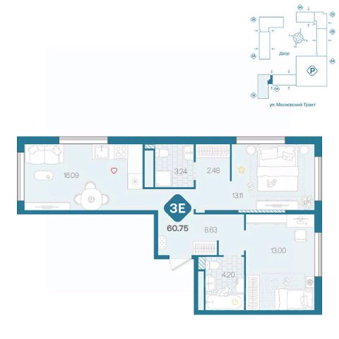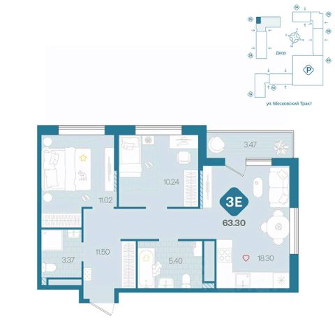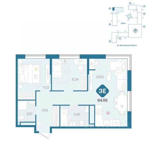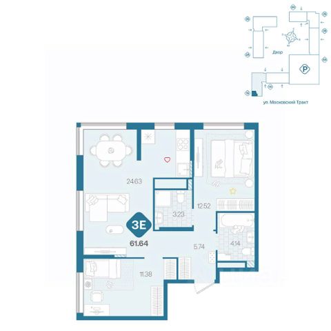 Продаётся 2-комнатная квартира в строящемся доме (д. 1713), срок сдачи: III-кв. 2026, общей площадью 61.73 кв.м., на 5 этаже. Новый жилой комплекс от Специализированного застройщика "ПАРИТЕТ. ЗАПАДНАЯ СИБИРЬ" расположен по адресу: г. Тюмень, по ул. Московский Тракт.