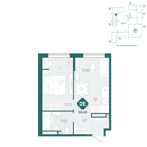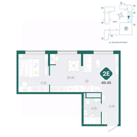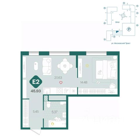 Двухкомнатная квартира с отдельной спальней и эргономичной прихожей с нишей для вместительного шкафа и большим санузлом. В гостиной организован выход на балкон. Подойдет для молодой пары или холостяка.