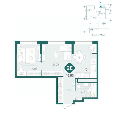 Евродвухкомнатная квартира с отдельной спальней и эргономичной прихожей с нишей для вместительного шкафа и большим санузлом. Подойдет для молодой пары или холостяка.