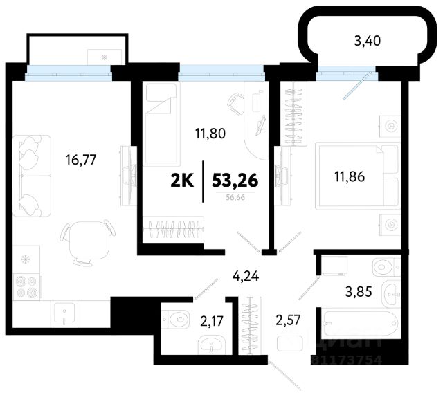 116 748 ₽/м²