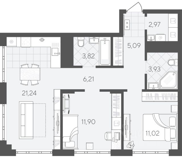 Квартира 495 на 7 этаже. "Скандиа. Квартал в Слободе" — современная комплексная застройка в развитом районе, состоящая из двух домов переменной этажности и двух многоуровневых паркингов. Доминантами проекта станут две 24-этажные секции. Квартал расположен через дорогу от гимназии 4, рядом со сквером Вьюжный и лесопарком. В шаговой доступности 2 детских сада, остановка общественного транспорта, поликлиника, магазины и кофейни. Квартира с 2 спальнями площадью 66,72 кв.м Продуманная геометрия комнат позволит легко зонировать пространство и подобрать необходимую мебель. В кухне-гостиной комфортно вместе готовить, проводить семейные ужины или настольные игры с друзьями. Один из двух санузлов можно оборудовать под функциональную постирочную. Необходимые коммуникации уже проведены, осталось только подключить стиральную машину и организовать место для сушки вещей.