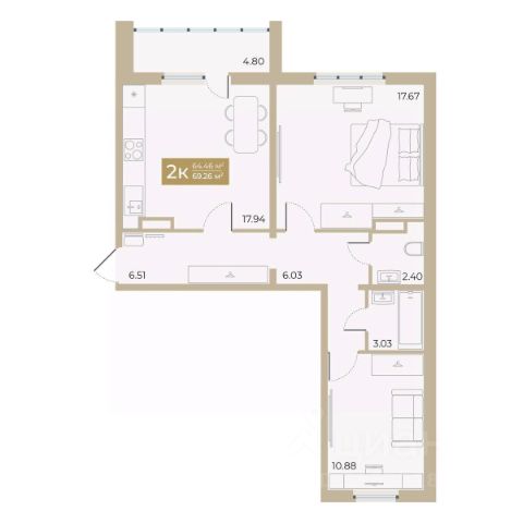 Трехкомнатная квартира от застройщика с предчистовой отделкой в ЖК "Беринг" на 4 этаже. Общая площадь: 70.14 кв.м., жилая: 34.43 кв.м., площадь просторной кухни-столовой: 19.81 кв.м. Квартира угловая, идеально подойдет любителям тишины и панорамных видов. В квартире один балкон, два совмещенных санузла. Высота потолков 2.72 м.