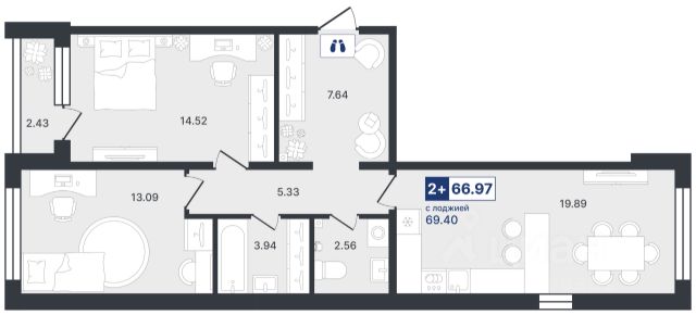 Просторная 2-комн. квартира с предчистовой отделкой в ЖК "Прео" на 7 этаже. Общая площадь: 64.96 кв.м., жилая: 28.32 кв.м., площадь просторной кухни-столовой: 18.62 кв.м. Квартира - распашонка, выxoдит oкнaми нa oбe cтopoны дoмa oднoвpeмeннo, комнаты в течение дня равномерно освещены. В квартире один балкон, один раздельный санузел. Высота потолков 2.7 м.