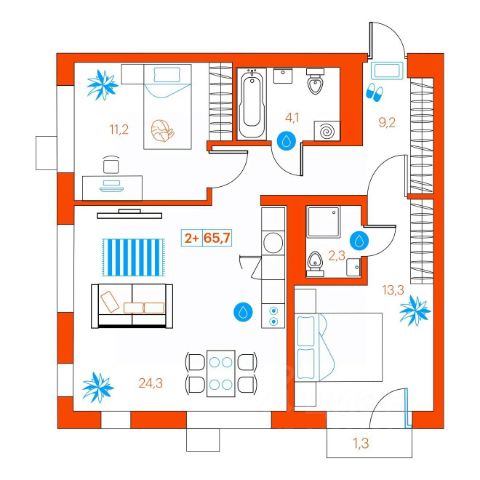 Просторная квартира формата 2+, "распашонка" (окна на разные стороны дома) и с мастер спальней. Дом уже сдан, ключи на руках — можете заехать сразу! Основные характеристики: - Современная планировка: кухня-гостиная, мастер спальня с отдельным санузлом. - Большие окна: квартира светлая, наполненная природным светом. - На первом этаже: колясочная, зона для ухода за животными, мойка самокатов и колясок. - Телеметрия: показания всех счётчиков передаются сами в управляющую компанию. - Безопасность: закрытый двор без машин, видеонаблюдение. - Дизайнерские парадные: современные, сквозные входные группы с уровня земли. - Кладовые: вместительные кладовые находятся на цокольном этаже для хранения вещей. - Французские балконы: добавляют эстетичности. - WC: предусмотрены в местах общего пользования. - Закрытый паркинг: обеспечит безопасность вашего автомобиля. - Уникальный пешеходный бульвар с современными площадками для отдыха и спорта станет прекрасным местом для времяпрепровождения. - На первом этаже домов откроется торговая галерея, кафе и другие полезные сервисы для жителей. Удобное месторасположение: - До центра города всего 10-15 минут. - В шаговой доступности: остановки общественного транспорта, детские сады, школы, поликлиника, магазины, аптеки и многое другое. - Вблизи расположены лесопарк Гагарина и парк Ватутинская роща для приятных прогулок на свежем воздухе. Эта квартира станет отличным выбором как для проживания, так и для инвестиций!! Не упустите возможность стать обладателем современного жилья по привлекательной цене. Звоните, с радостью организую показ! Номер предложения: 49113.