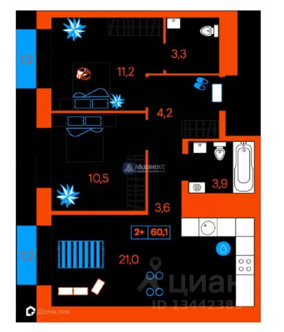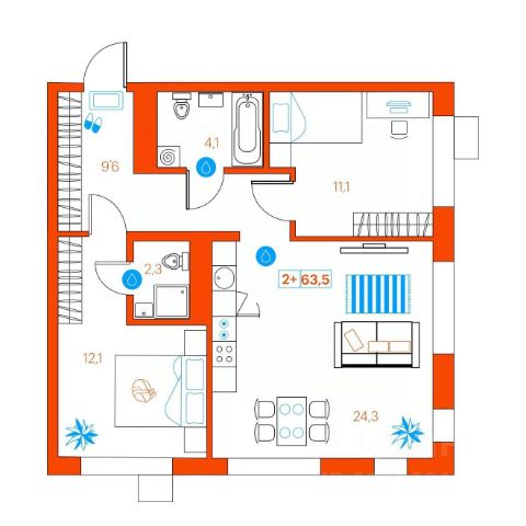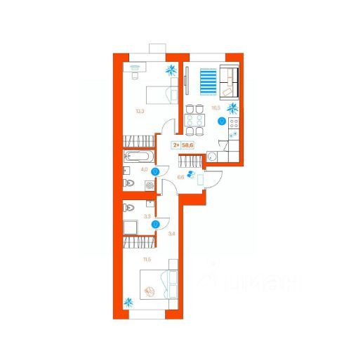 Продаю квартиру формата 2+ с родительской спальней. Планировка квартиры правильной формы,легко можно зонировать, с увеличенными оконными проемами.
