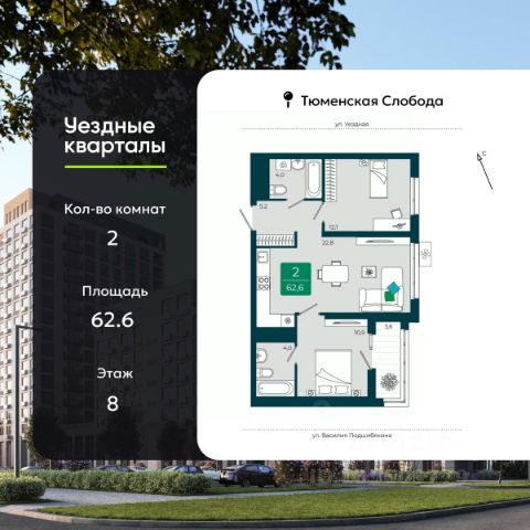 Просторная 2-комн. квартира в ЖК "Уездные кварталы" на 4 этаже. Квартира без отделки, полностью готова к ремонту. Общая площадь: 63.5 кв.м., жилая: 22.6 кв.м., площадь просторной кухни-столовой: 21.2 кв.м. Квартира угловая, идеально подойдет любителям тишины и панорамных видов. В квартире одна лоджия, два совмещенных санузла. Высота потолков 2.72 м. Дом монолитный, черырехподъездный, переменной этажности, от 9 до 16 этажей. Квартира находится в 3-й секции высотой 9 этажей в корпусе ГП-5.2. На этаже 4 квартиры. В подъезде 1 пассажирский и 1 грузовой лифт. Окончание строительства - 4 квартал 2026 года. Оформление сделки по договору долевого участия. "Уездные кварталы" - семейный жилой комплекс комфорт-класса с авторской архитектурой и трехуровневым ландшафтным озеленением. Рядом расположены крупные транспортные развязки, которые позволяют добраться в любую точку города за 15 минут. Жилой комплекс находится в современном районе с развитой инфраструктурой, на первой линии Тюменской Слободы. Вокруг есть всё необходимое в шаговой доступности: новые детские сады и школы, остановки общественного транспорта, магазины, кафе и рестораны, поликлиника, детская школа искусств, парки и спортивный комплекс. На первых этажах квартала расположена собственная коммерческая сеть, а также свой соседский центр. Проект включает 5 домов переменной этажности с более чем 100 планировками - с террасами, французскими балконами и мастер-спальнями. Закрытые дворы оборудованы интерактивными площадками для игр, спортивными зонами и местами тихого отдыха. Вдоль жилого комплекса расположен пешеходный бульвар с сухим фонтаном, а для автомобилей предусмотрен теплый паркинг. Часть квартир можно приобрести с ремонтом, мебелью и техникой от застройщика, а расходы включить в ипотечный платеж. #zm5eOE
