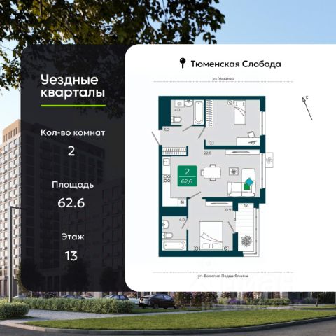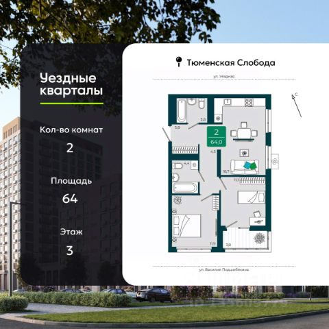 Просторная 2-комн. квартира в ЖК "Уездные кварталы" на 2 этаже. Квартира без отделки, полностью готова к чистовой отделке и дальнейшему ремонту. Общая площадь: 75.8 кв.м., жилая: 20.3 кв.м., площадь просторной кухни-столовой: 21.2 кв.м. Комнаты изолированные, все окна выходят на одну сторону. В квартире одна лоджия, два совмещенных санузла. Высота потолков 2.72 м. Дом монолитный, двухподъездный, переменной этажности, от 9 до 17 этажей. Квартира находится в 1-й секции высотой 17 этажей в корпусе ГП-5.1. На этаже 8 квартир. В подъезде 1 пассажирский и 1 грузовой лифт. Окончание строительства - 4 квартал 2026 года. Оформление сделки по договору долевого участия. "Уездные кварталы" - семейный жилой комплекс комфорт-класса с авторской архитектурой и трехуровневым ландшафтным озеленением. Рядом расположены крупные транспортные развязки, которые позволяют добраться в любую точку города за 15 минут. Жилой комплекс находится в современном районе с развитой инфраструктурой, на первой линии Тюменской Слободы. Вокруг есть всё необходимое в шаговой доступности: новые детские сады и школы, остановки общественного транспорта, магазины, кафе и рестораны, поликлиника, детская школа искусств, парки и спортивный комплекс. На первых этажах квартала расположена собственная коммерческая сеть, а также свой соседский центр. Проект включает 5 домов переменной этажности с более чем 100 планировками - с террасами, французскими балконами и мастер-спальнями. Закрытые дворы оборудованы интерактивными площадками для игр, спортивными зонами и местами тихого отдыха. Вдоль жилого комплекса расположен пешеходный бульвар с сухим фонтаном, а для автомобилей предусмотрен теплый паркинг. Часть квартир можно приобрести с ремонтом, мебелью и техникой от застройщика, а расходы включить в ипотечный платеж.