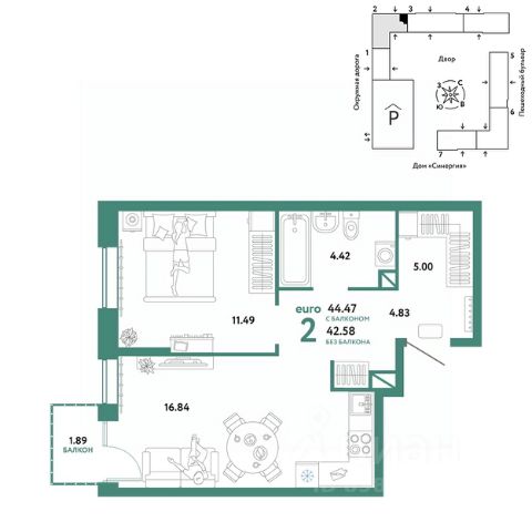 Объявление от застройщика Страна Девелопмент. Покупка квартиры защищена банком. Продается 2комнатная квартира на 10 этаже от застройщика Страна Девелопмент. Площадь квартиры 44,5 кв. м. Юнион - проект двух застройщиков всероссийского масштаба: Страны Девелопмент и Группы Эталон. Мы объединили опыт и компетенции в девелопменте, создании экологичной среды, разработке ландшафтного дизайна, коммерческой инфраструктуры и продуманных планировок. Результатом синергии станет комфортное пространство для жизни, отдыха и восстановления. Рядом два парка с хвойными и смешанными лесами — "Затюменский" и "Плехановский бор". Летом можно устраивать пикники, а зимой кататься по лыжным трассам. ОТДЕЛКА Квартиры сдаются с предчистовой отделкой. Все грязные работы выполнены: произведена разводка электричества и отопления; выполнена стяжка пола; стены выровнены "под маяк". В квартире установлены розетки, выключатели и радиаторы. На входе — надежная стальная дверь. Вам остается только выбрать материалы и начать ремонт Доступна опция "Ремонт от застройщика". Стоимость можно включить в ипотеку. Вы можете заказать один из трех цветовых вариантов: светлый, натуральный или тёмный. КУХНЯ С ТЕХНИКОЙ Теперь дополнительно к ремонту можно заказать кухню со встроенной техникой. Эргономику и функциональное наполнение разработали под каждую планировку. ПОЛНАЯ МЕБЛИРОВКА Больше не нужно тратить время даже на подбор, доставку и сборку мебели.Вы можете включить в стоимость квартиры с ремонтом полную меблировку. Что входит в меблировку? - Кухня с техникой и сантехникой - Диван - Кровать - Шкаф в спальне - Шкаф в прихожей На консультации менеджер подскажет, какие акции действуют, и как получить одобрение по ипотеке с низкой ставкой. Более подробная информация по телефону. Застройщик ООО СЗ "Страна-Эталон". Проектные декларации на сайте наш.дом.рф.