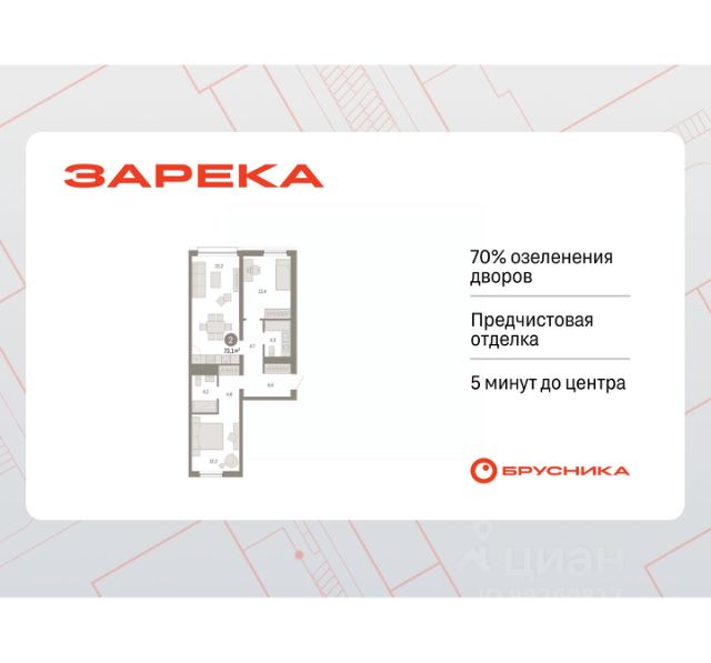 • ✓ В базе Циан 62 2-комнатных квартир в ЖК Зарека в Тюмень