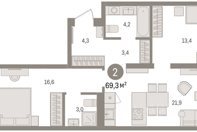 Продается 2-комн. квартира с предчистовой отделкой в ЖК "Зарека" на 6 этаже. Общая площадь: 58.39 кв.м. Высота потолков 2.7 м. Дом монолитный, многоподъездный, переменной этажности, от 7 до 16 этажей. Квартира находится в 4-й секции высотой 8 этажей в корпусе 2-1. На этаже 6 квартир. В подъезде 1 пассажирский и 1 грузовой лифт. Окончание строительства - 2 квартал 2029 года. Оформление сделки по договору долевого участия. Квартира с кухней-гостиной и двумя спальнями в жилом районе "Зарека". Особенности планировки: вид во двор, гардеробная, лоджия, предчистовая отделка, разнесённые спальни. О доме Замкнутый квартал высотой 8 этажей с 16-ти этажной башней-доминантой и двором на стилобате двухуровневого паркинга. Дом 2.1 сочетает в себе приемы классической и современной архитектуры. Выразительность достигается благодаря симметричной композиции фасада, чередование массинга идет за счет эркеров и подрезок. Фасады первых этажей выполнены из клинкерного кирпича, выше - штукатурные. Акцентом на фасаде являются металлические импосты окон, темно-серого цвета, который будет контрастировать со светлыми оттенками самого фасада. квартиры в нашей базе: ЗРК02.1-Ж4.6.1. Проект На планировочную структуру "Зареки" повлияла близость к автомобильному мосту Челюскинцев. Мы расположили жилые здания так, чтобы они постепенно удалялись от проезжей части. Приём напоминает лесенку: чем сильнее мост возвышается над участком застройки, тем дальше по отношению к нему стоят дома. Этот ступенчатый сдвиг позволил нам сформировать буфер между кварталами и оживлённой магистралью. Мы намерены высадить здесь высокие деревья и создать дополнительную защиту от дорожных шума и пыли. В границах нашего участка мы намерены разместить школу и два встроенных детских сада на 135 и 150 мест. Общественные пространства С севера на юг территорию будет пронизывать пешеходный бульвар. Мы мыслим это общественное пространство как главный центр притяжения. На нём будут сосредоточены основные детские игровые и спортивные зоны, места для встреч и спокойного отдыха. Он также сыграет роль мостика, ведущего к другим нашим проектам — "Европейскому кварталу" и "Дому у озера". Одна из базовых идей мастер-плана касается береговой линии. Сегодня озеленение этой территории носит стихииныи характер, а прямому доступу к Туре препятствует дамба. Мы хотим благоустроить пространства у воды и открыть их для людей. Архитекторы спроектировали систему многоярусных троп и спусков к реке, смотровые площадки и места для активного отдыха и пикников. #2ME5tV