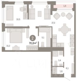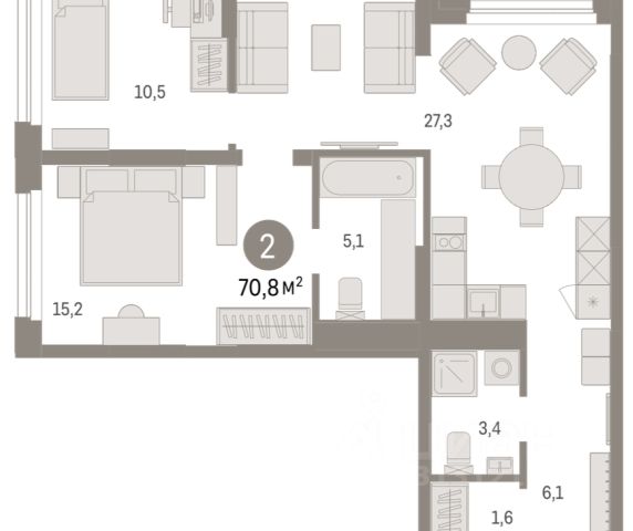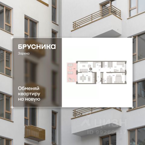 2-комн. квартира от застройщика с предчистовой отделкой в ЖК "Зарека" на 8 этаже. Общая площадь: 90.81 кв.м., жилая: 32.5 кв.м., площадь просторной кухни-гостиной: 10.9 кв.м. Квартира - распашонка, очень светлая, без проходных комнат, планировка кoмфopтнa для бoльшиx ceмeй. В квартире одна лоджия, два совмещенных санузла. Наличие в квартире террасы дает возможность для обустройства дополнительной площади. Высота потолков 2.7 м. Дом монолитный, многоподъездный, переменной этажности, от 6 до 16 этажей. Квартира находится во 2-й секции высотой 9 этажей в корпусе 5-2. На этаже 3 квартиры. В подъезде 1 пассажирский и 1 грузовой лифт. Окончание строительства - 4 квартал 2026 года. Оформление сделки по договору долевого участия. Квартира с кухней-гостиной и двумя спальнями в жилом районе "Зарека". Особенности планировки: мастер-спальня, предчистовая отделка, разнесённые спальни, терраса на крыше. квартиры в нашей базе: ЗРК05.2-Ж2.8.2. Проект На планировочную структуру "Зареки" повлияла близость к автомобильному мосту Челюскинцев. Мы расположили жилые здания так, чтобы они постепенно удалялись от проезжей части. Приём напоминает лесенку: чем сильнее мост возвышается над участком застройки, тем дальше по отношению к нему стоят дома. Этот ступенчатый сдвиг позволил нам сформировать буфер между кварталами и оживлённой магистралью. Мы намерены высадить здесь высокие деревья и создать дополнительную защиту от дорожных шума и пыли. В границах нашего участка мы намерены разместить школу и два встроенных детских сада на 135 и 150 мест. Общественные пространства С севера на юг территорию будет пронизывать пешеходный бульвар. Мы мыслим это общественное пространство как главный центр притяжения. На нём будут сосредоточены основные детские игровые и спортивные зоны, места для встреч и спокойного отдыха. Он также сыграет роль мостика, ведущего к другим нашим проектам — "Европейскому кварталу" и "Дому у озера". Одна из базовых идей мастер-плана касается береговой линии. Сегодня озеленение этой территории носит стихииныи характер, а прямому доступу к Туре препятствует дамба. Мы хотим благоустроить пространства у воды и открыть их для людей. Архитекторы спроектировали систему многоярусных троп и спусков к реке, смотровые площадки и места для активного отдыха и пикников.